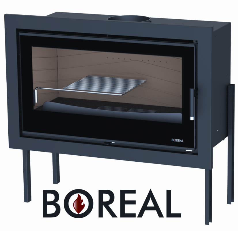 BOREAL I90S je teplovzdušná krbová vložka s rovným predným presklením zdobeným elegantným čiernym orámovaním s inštalačným zamurovacím rámčekom a stojanom s výškovo nastaviteľnými nôžkami. Krbovú vložku je možné napojiť na teplovzdušné rozvody a vykurovať tak celý dom.
