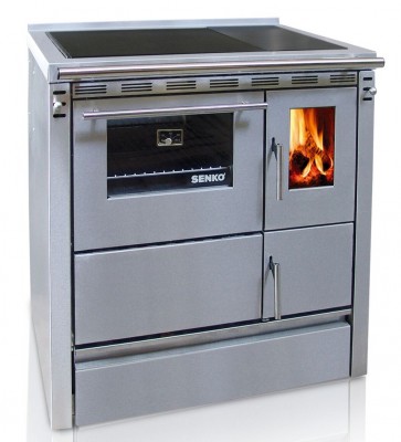 Sporák na tuhé palivo Senko SG-75 nerez matná o šírke 75 cm. Moderný sporák na drevo v prevedení nerezový matný s chrómovanými doplnkami a nerezovým rámom platne